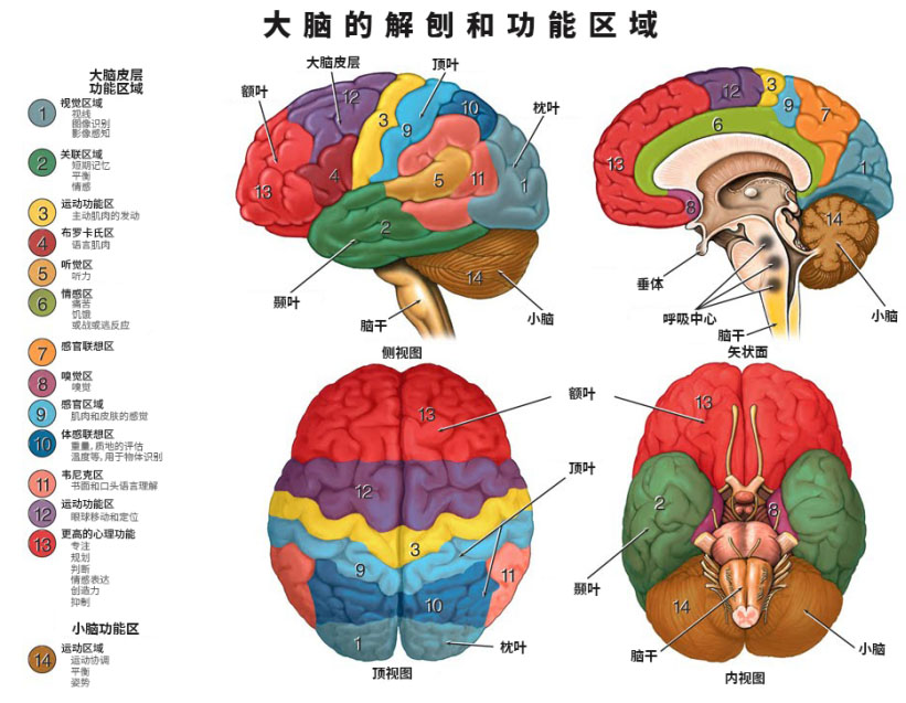 了解治療原理前,先帶大家通過一張圖片了解一下我們人腦的不同功能區域都承擔著什么功能?