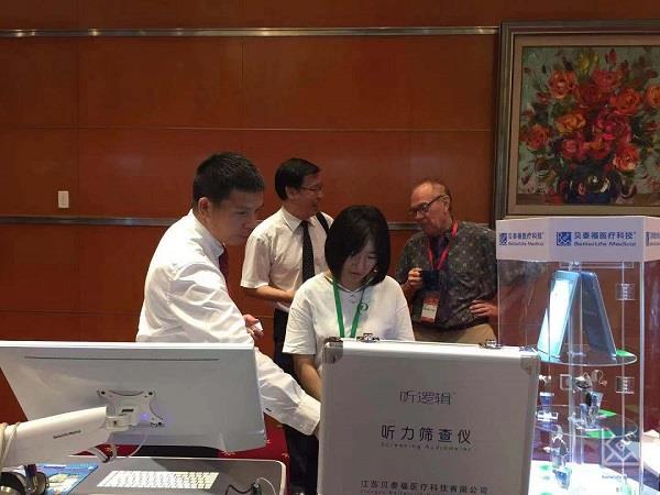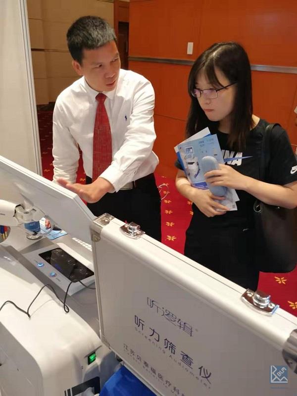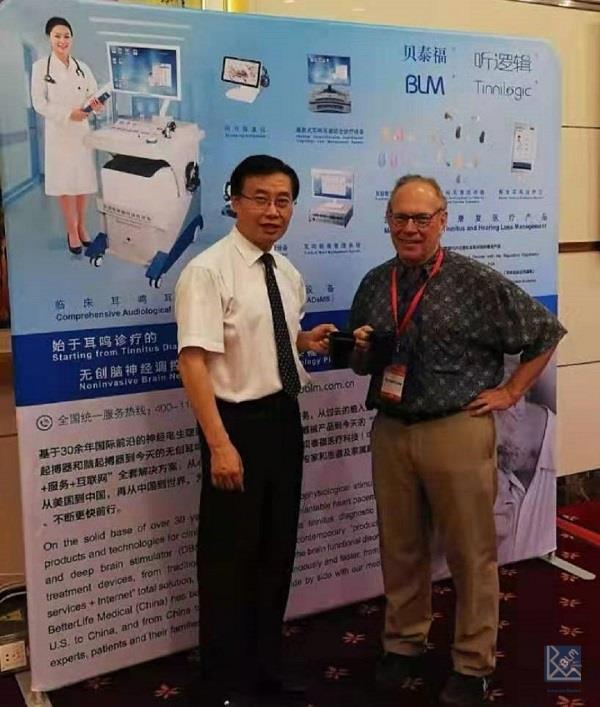 貝泰福醫療科技攜最新研發的耳鳴耳聾綜合診療設備型號參加了此會議并布設展臺,為各位專家學者展示介紹耳鳴耳聾綜合診療設備、移動耳鳴治療儀、快捷聽力篩查儀、耳鳴耳聾助聽器等已經獲得中國國家藥品監督管理局NMPA和美國藥監局FDA雙注冊的專利產品,以及基于神經電生理原理的無創神經調控耳鳴聲刺激治療技術和臨床解決方案。在展臺上,貝泰福醫療科技公司董事長趙勇博士與來自國內外的醫生專家進行學術交流。