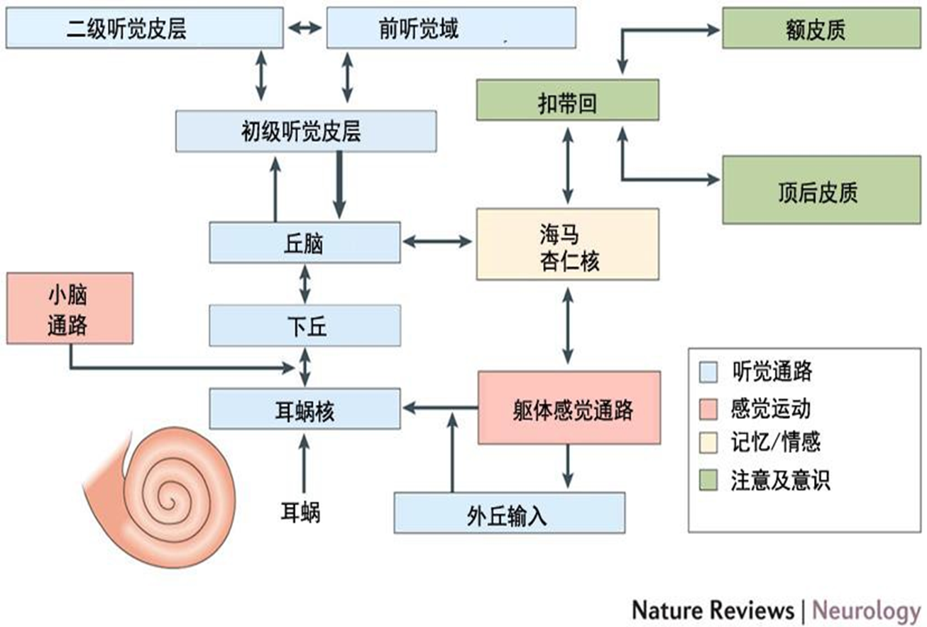 耳鳴及神經功能障礙疾病是腦神經電信號紊亂或缺失所導致的病癥,本質是腦神經系統問題,目前國際學術前沿主流是中樞發病機制,涉及到“生理”和“心理”兩大部分的交互影響。